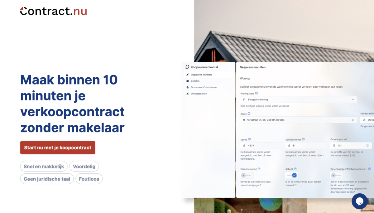 Met hun platform Contract.nu bieden ze huiseigenaren de mogelijkheid om hun woning zélf te verkopen, zonder tussenkomst van een makelaar. Dankzij de slimme inzet van Merkato configurators heeft de gebruiker volledig grip op het verkoopproces.